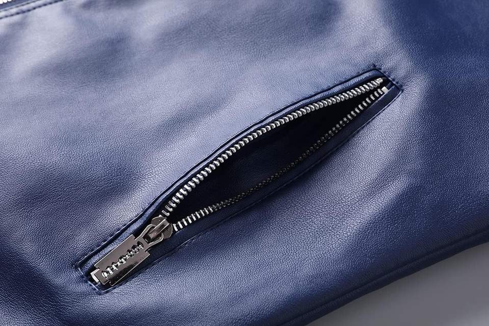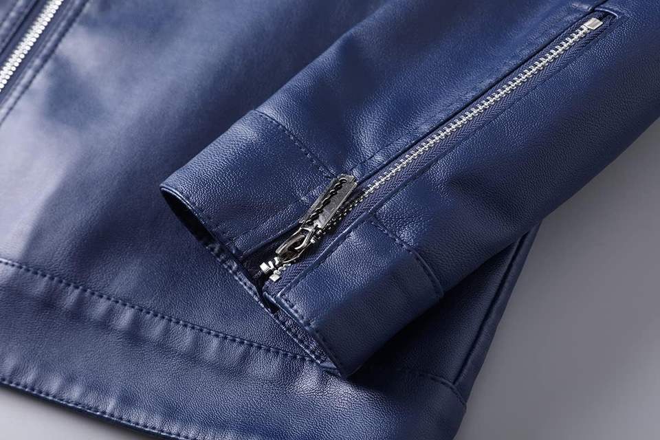 แจ็กเก็ตหนัง PU สำหรับเด็กผู้ชายเสื้อแจ็กเก็ตหนังแท้มีซิปสีฟ้าสินค้าใหม่2025ออกแบบได้ตามที่ต้องการ
