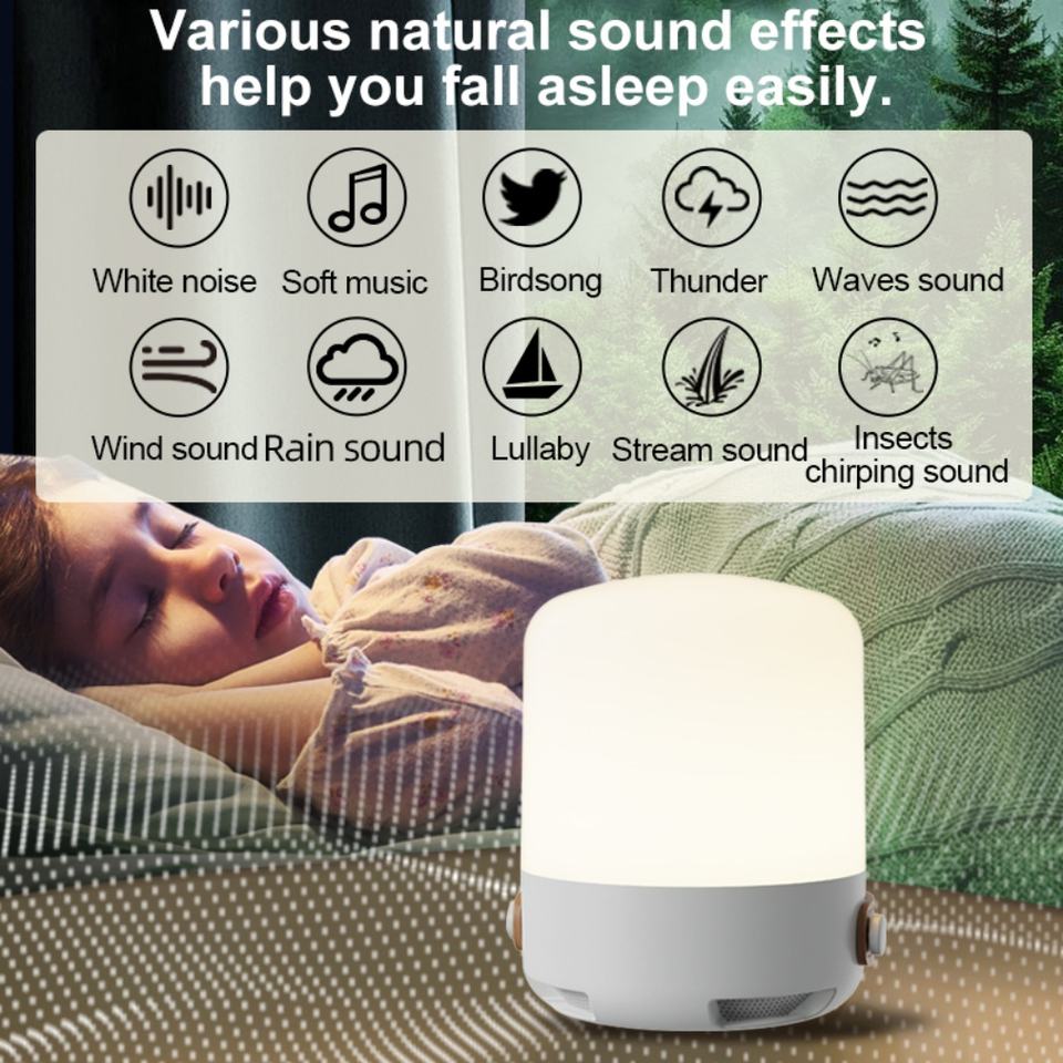 ลำโพงบลูทูธพกพา รุ่นใหม่ ปี 2025 เครื่องช่วยให้เด็กนอนหลับพร้อมเสียงไวท์นอยซ์ ไฟกลางคืน LED แบตเตอรี่แบบชาร์จได้ 1500mAh วัสดุ ABS ทันสมัย