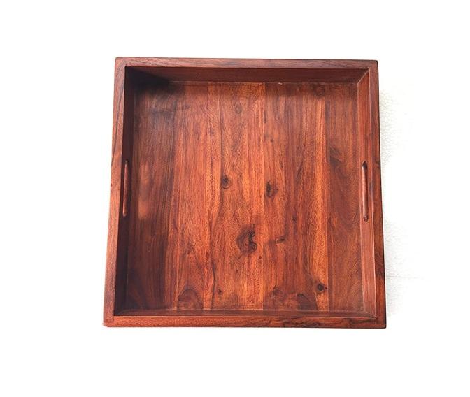 ถาดเสิร์ฟ2025ไม้ธรรมชาติพร้อมงานฝีมือทรงสี่เหลี่ยมถาดเสิร์ฟชากาแฟอาหารเช้า