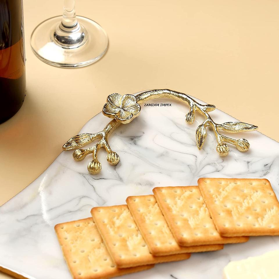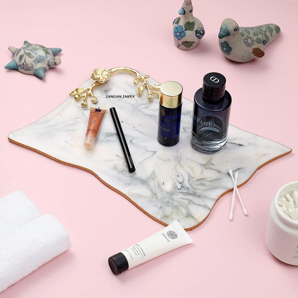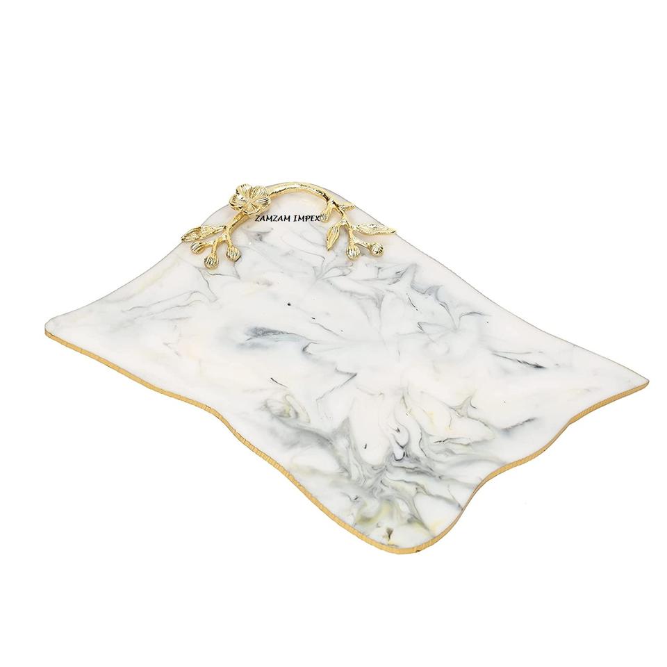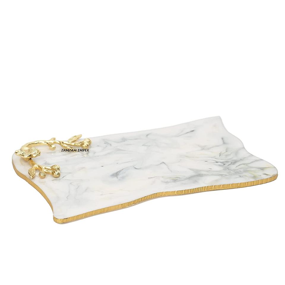 ถาดเรซิ่นทรงสี่เหลี่ยมผืนผ้าลายหินอ่อนสีขาวแบบนามธรรมพร้อมมุมสีทอง | ของตกแต่งบ้านอเนกประสงค์ทันสมัยสำหรับเสิร์ฟและมอบเป็นของขวัญ