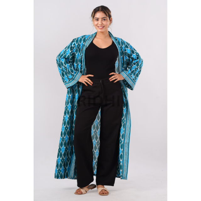 Product Name:Printed Blue Ikat Cotton kimono