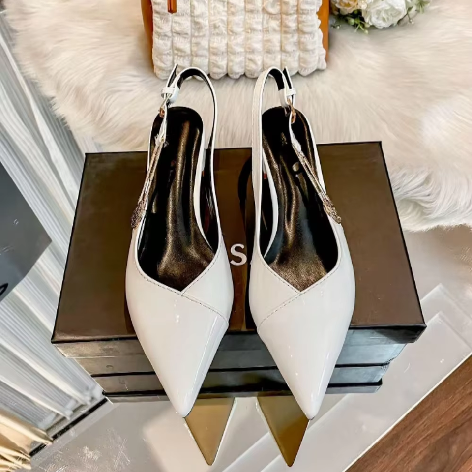 รองเท้าส้นสูงแบบสวมสำหรับเจ้าสาว รุ่นใหม่ปี 2025 ดีไซน์เซ็กซี่ หนังแท้ ระบายอากาศได้ดี สไตล์ฤดูร้อน นุ่มสบายสำหรับฤดูใบไม้ผลิ