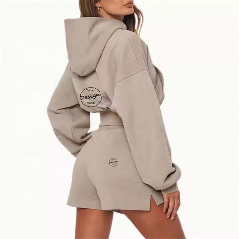 ชุดกางเกงขาสั้นมีฮู้ดสำหรับผู้หญิงชุดวิ่งขาสั้นมีฮู้ด2ชิ้นมาใหม่2025