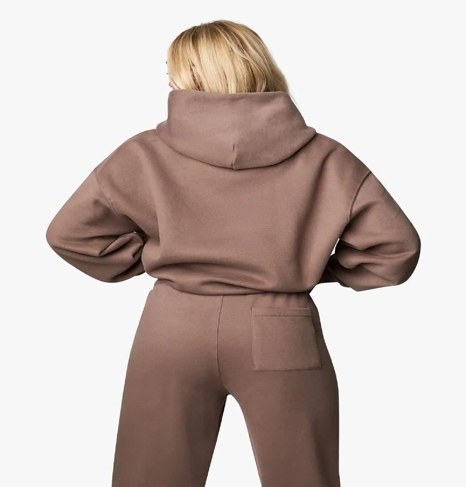 เสื้อกันหนาวมีฮู้ดสำหรับผู้หญิง, สินค้ามาใหม่ชุดวอร์มกางเกงสองชิ้นแฟชั่นลำลองเนื้อนุ่มใส่สบายสีพื้นสวมใส่สบายมาใหม่2025ฤดูหนาว