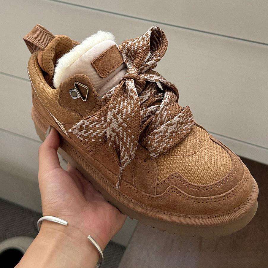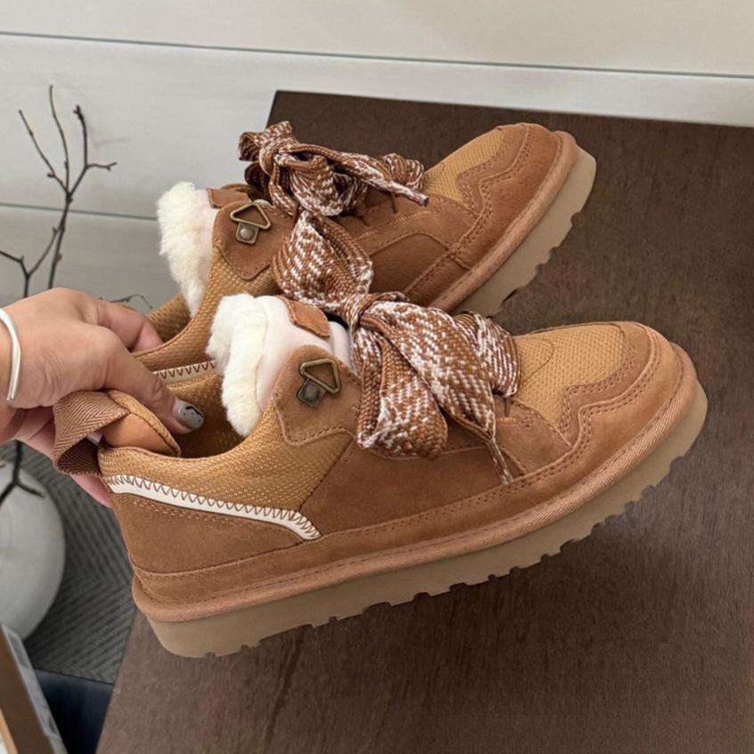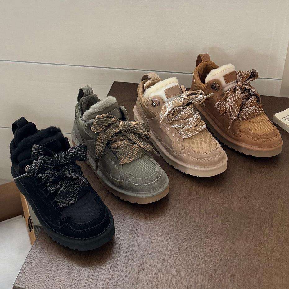 รองเท้าบูตกันหิมะหนังแท้สำหรับผู้หญิงทันสมัย100% จากนักออกแบบแฟชั่นสินค้าใหม่2025