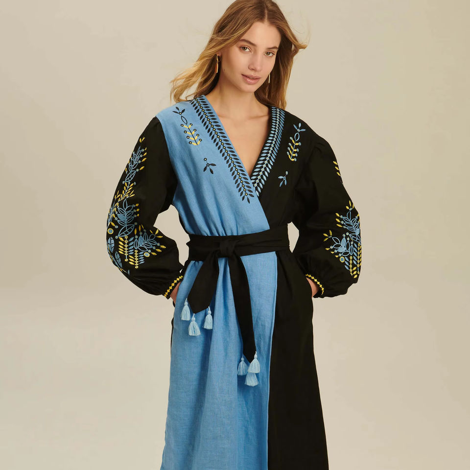 2025เดรสลำลองแขนยาวคลุมเข่าสไตล์ยูเครนสำหรับผู้หญิงชุดเดรสลำลองแขนยาวปักด้วยมือผ้าคอตตอนสินค้าออกใหม่