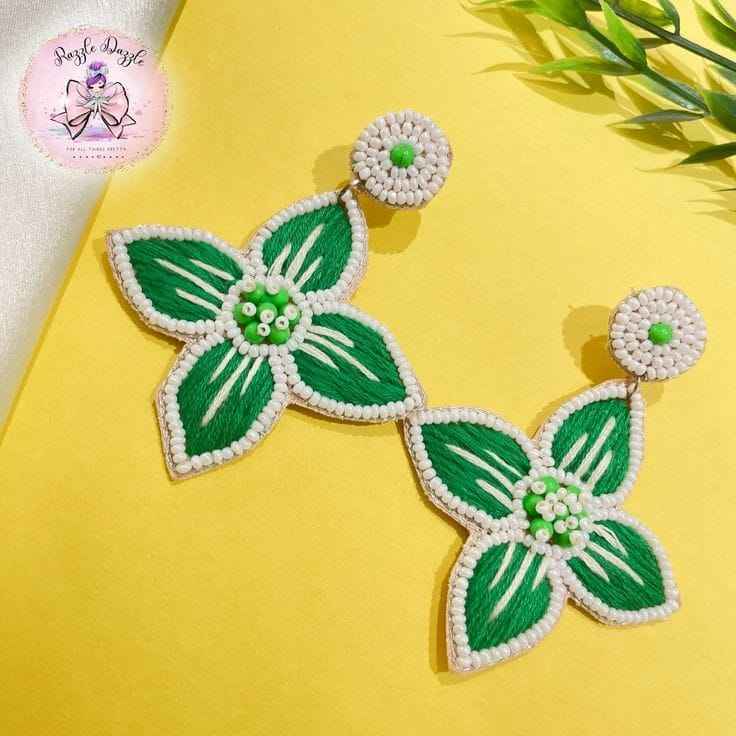 2025สินค้ามาใหม่ต่างหูเม็ดกลมแบบแฮนด์เมดสีเขียวขาวใส่ได้ทั้งชายและหญิงดีไซน์ดอกไม้แบบคลาสสิก