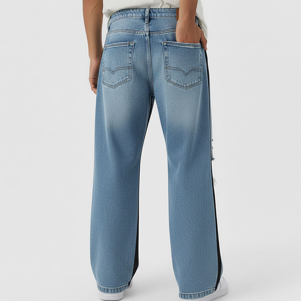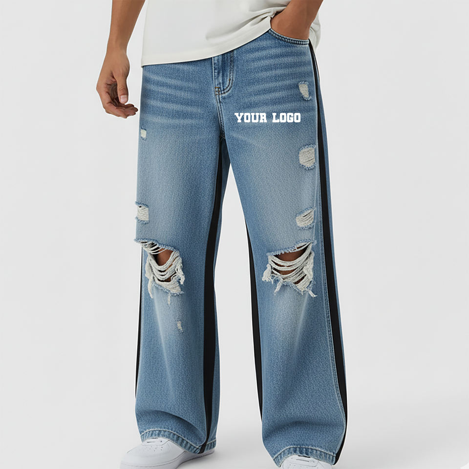 เสื้อผ้าลำลองรุ่นใหม่ปี 2025 ตกแต่งแถบสีดำด้านข้าง ผ้าหนาปานกลาง พิมพ์ลายแบบรีดร้อนตามสั่ง ปักลายขาดๆ สไตล์สตรีทแวร์