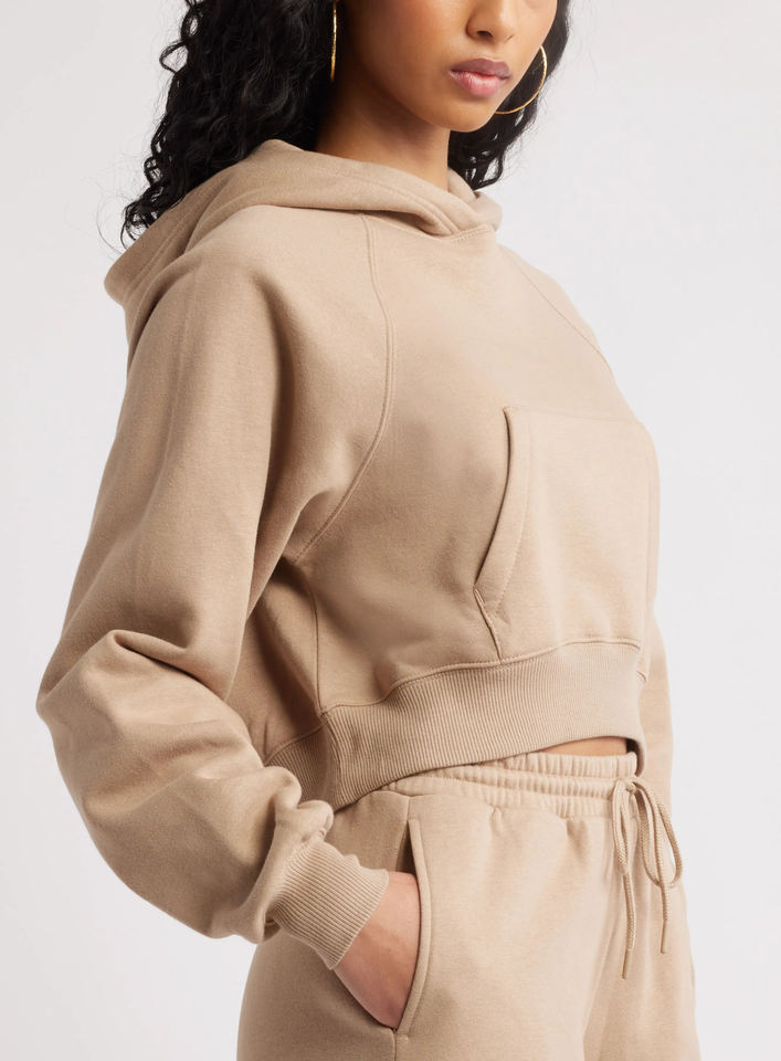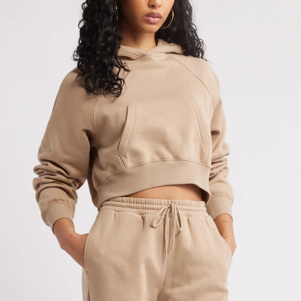 เสื้อครอปสตรีผ้าคอตตอนเทอร์รี่ผ้า100% น้ำหนักเบามีฮู้ดสำหรับผู้หญิงสินค้ามาใหม่2025