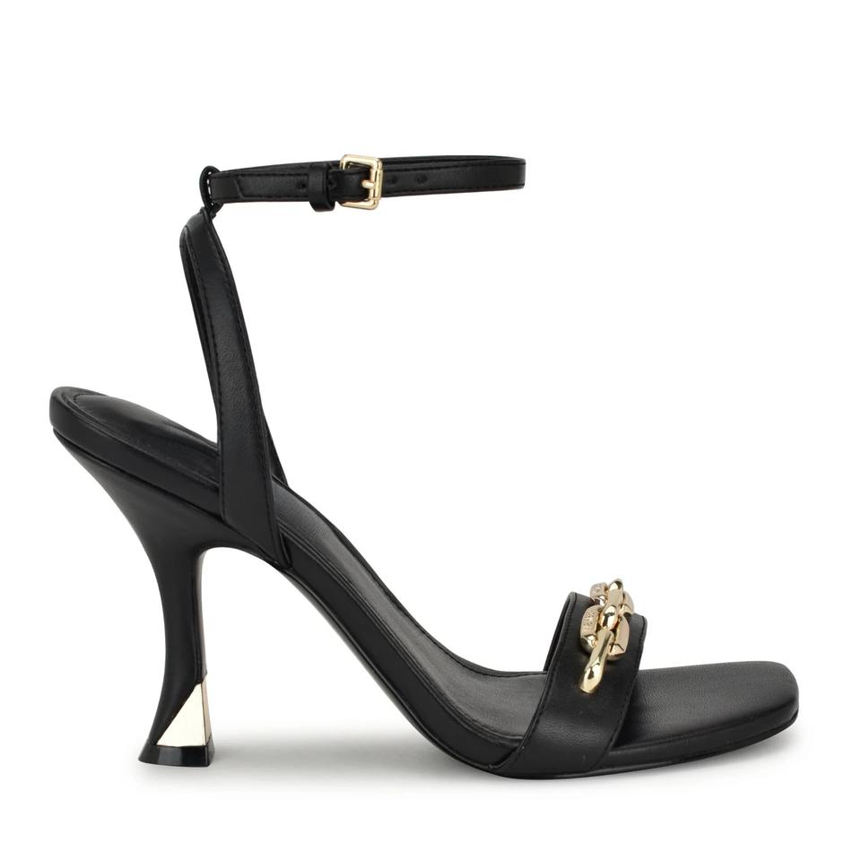 2025ใหม่รองเท้าส้นเข็มสายโซ่โลหะสีดำรองเท้าส้นสูงแบบผูกเชือกรองเท้าแตะสำหรับงานเลี้ยงตอนเย็นของผู้หญิง