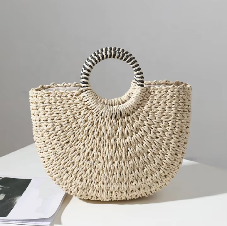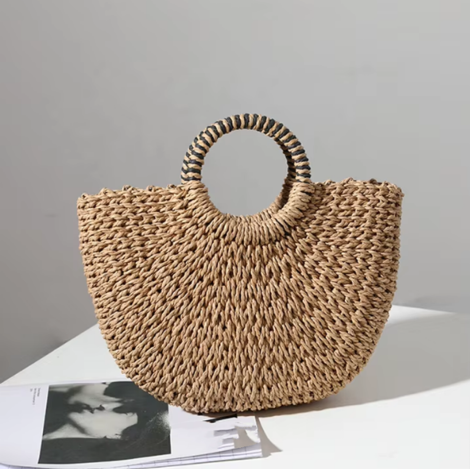 กระเป๋าถือประดับเปลือกหอยทำจากกระดาษทรงพระจันทร์ครึ่งดวงสไตล์โบฮีเมียนใหม่2025ฤดูร้อน