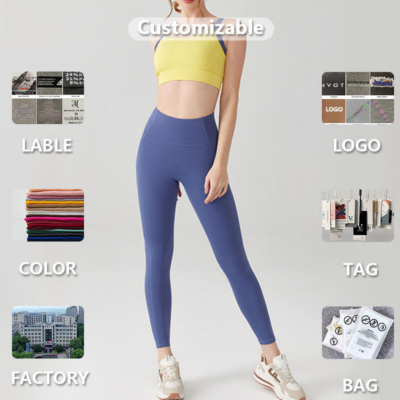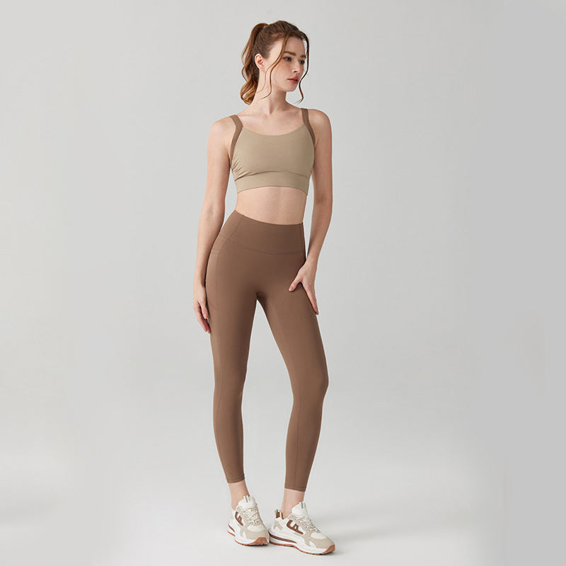 ชุดออกกำลังกายโยคะคุณภาพสูงแบรนด์ใหม่ปี 2025 คอทรงยู เอวสูง ผ้าสองสีลายสก็อต ผสมสแปนเด็กซ์/โพลีเอสเตอร์ ระบายอากาศได้ดี