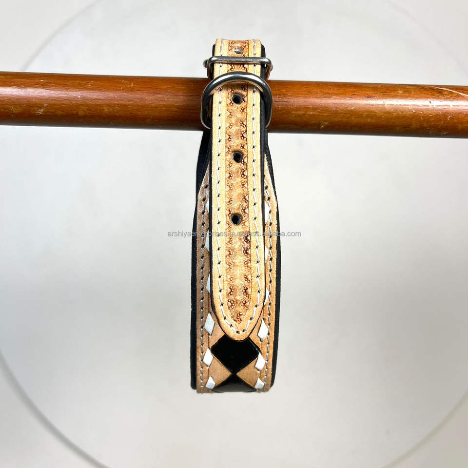 ชื่อผลิตภัณฑ์:ปลอกคอสุนัขหนังลายตารางหมากรุกมือ
