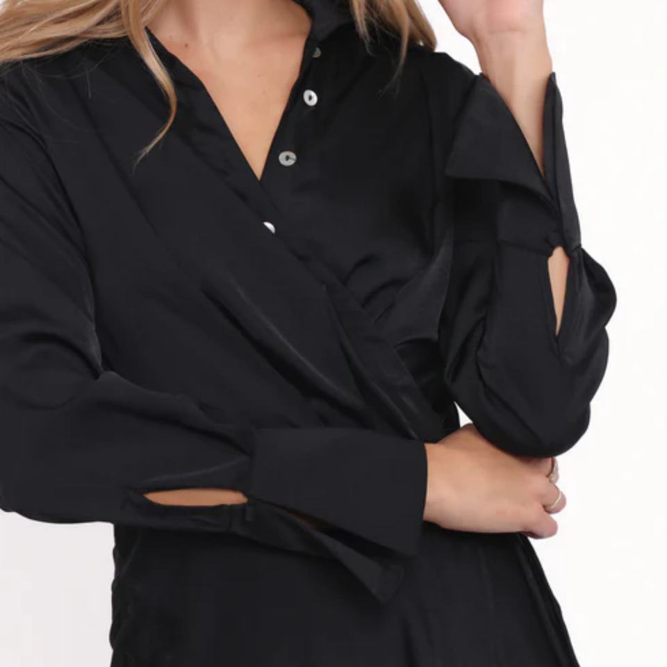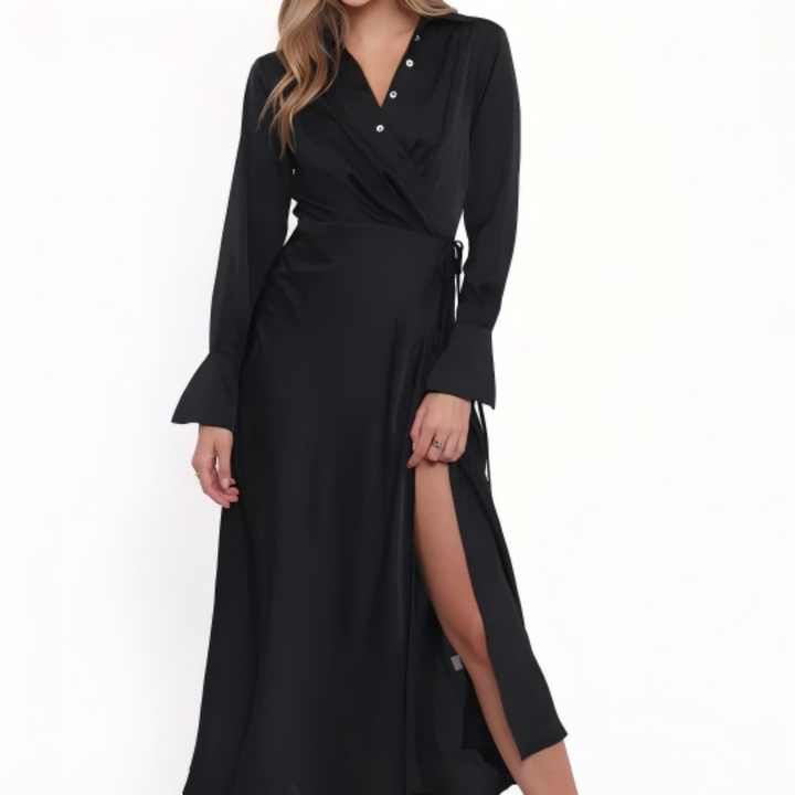 เดรสลำลองแบบใหม่ประจำปี 2025 แขนยาว ดีไซน์หรูหราทันสมัย ผ้าซาตินสีพื้น สำหรับผู้หญิง