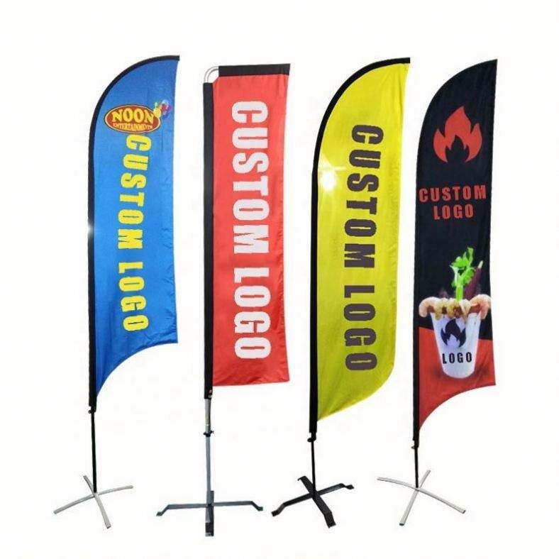 ธงชายหาดแบบกำหนดเองใหม่ปี 2025 ธงชายหาดสำหรับกีฬา ทนลม พิมพ์ลายขนนก สำหรับโปรโมชั่น