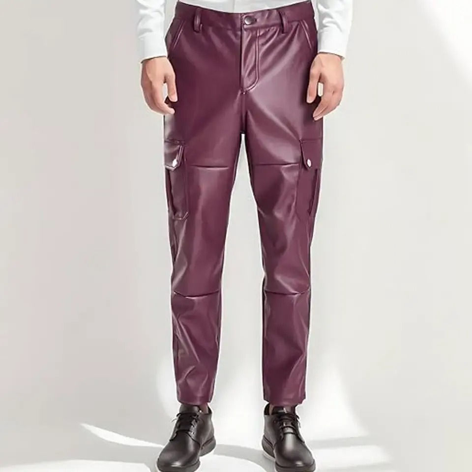 กางเกงหนังทรงตรงลำลองน้ำหนักเบาสำหรับผู้ชายรุ่นใหม่ปี 2025 ปรับแต่งได้ พร้อมโลโก้สั่งทำ ระบายอากาศได้ดี เป็นมิตรกับสิ่งแวดล้อม กันลม เหมาะสำหรับฤดูหนาวกลาง