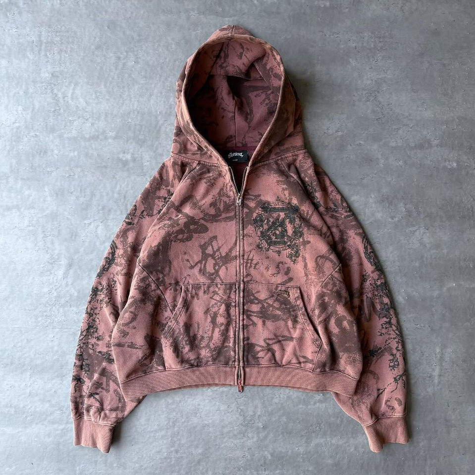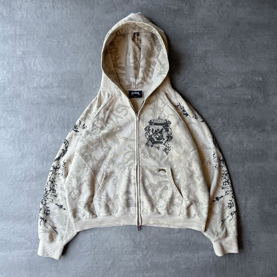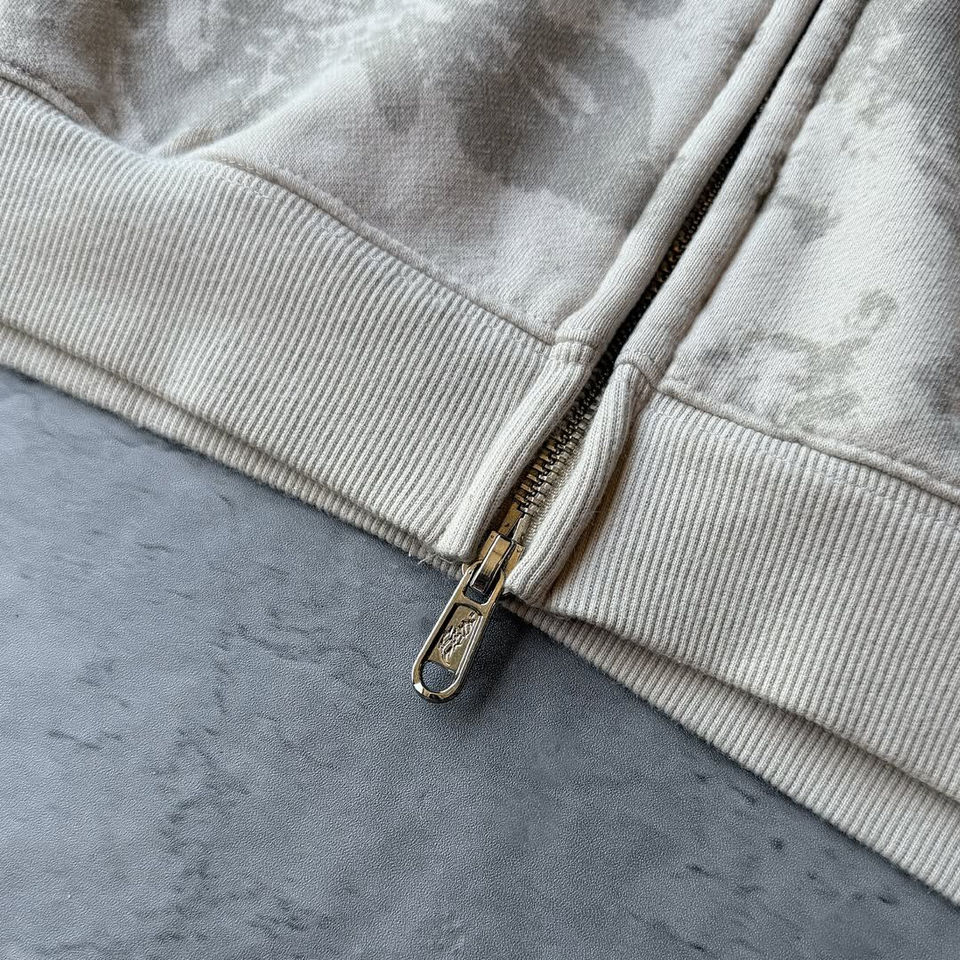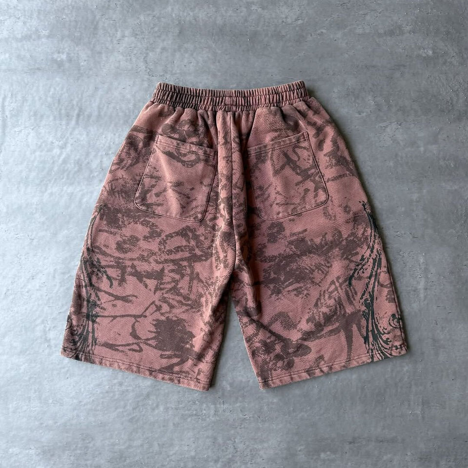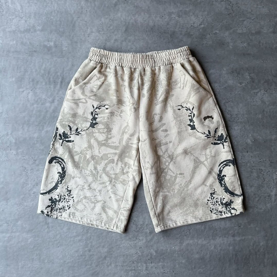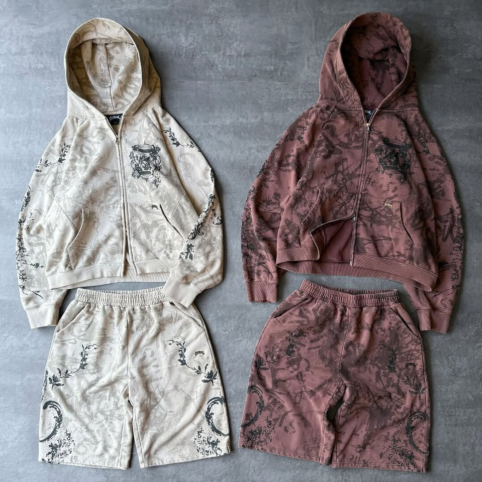 2025 New Design 100% Cotton Heavyweight Acid wash Fully printed Style Zipper Hoodie Embroidery Short Men Tracksuit