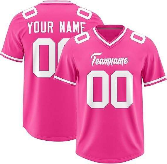 เสื้อฟุตบอลอเมริกันดีไซน์ใหม่ปี 2025 ผ้าโพลีเอสเตอร์ 100% พิมพ์ลายด้วยความร้อน คอวี ไซส์ใหญ่พิเศษ