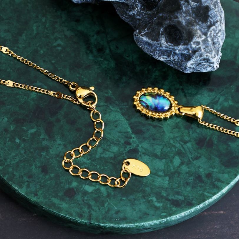 สร้อยคอจี้เปลือกหอยเป๋าฮื้อธรรมชาติชุบทอง 18K ดีไซน์ใหม่ปี 2025 ขายส่ง โซ่สแตนเลสเคลือบ PVD ไม่ลอก