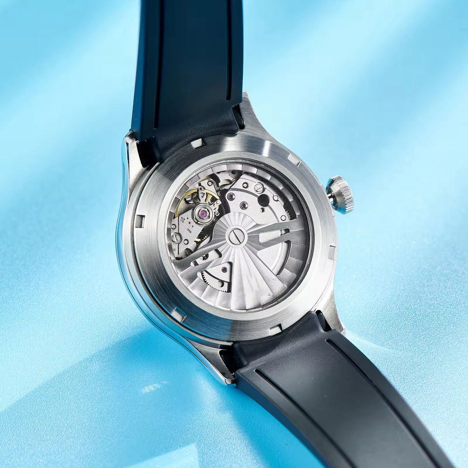 2025นาฬิกาอะนาล็อกอัตโนมัติสำหรับผู้ชายนาฬิกาสายหนังกลกันน้ำสีฟ้าเรืองแสง