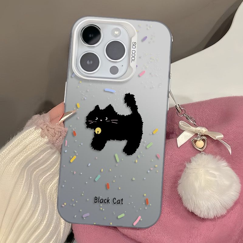 2025เคสโทรศัพท์สีดำลายการ์ตูนน่ารักสำหรับโทรศัพท์17 16 15 14 13 12 11 PRO MAX