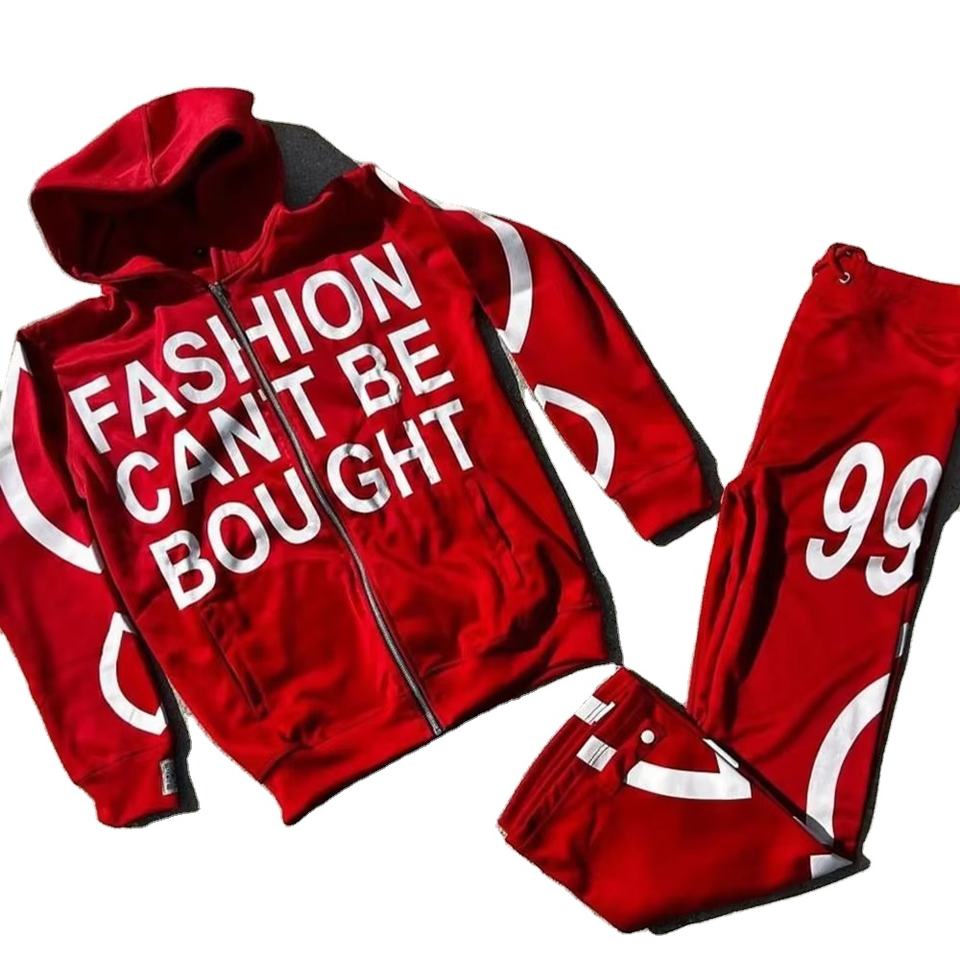 ชุดวอร์มกางเกงมีฮู้ดสำหรับวิ่งจ๊อกกิ้งดีไซน์ใหม่2025มีสองชิ้นทรงหลวมสกรีนลายพิมพ์โลโก้ตามสั่งสำหรับฤดูหนาว