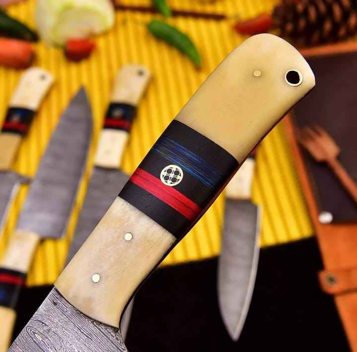 ชุดมีดทำครัวเหล็กดามัสกัส5ชิ้นสำหรับ2025แกน VG10ด้ามไม้เรซิน (เชฟ/ขนมปัง/ซันโตกุ)