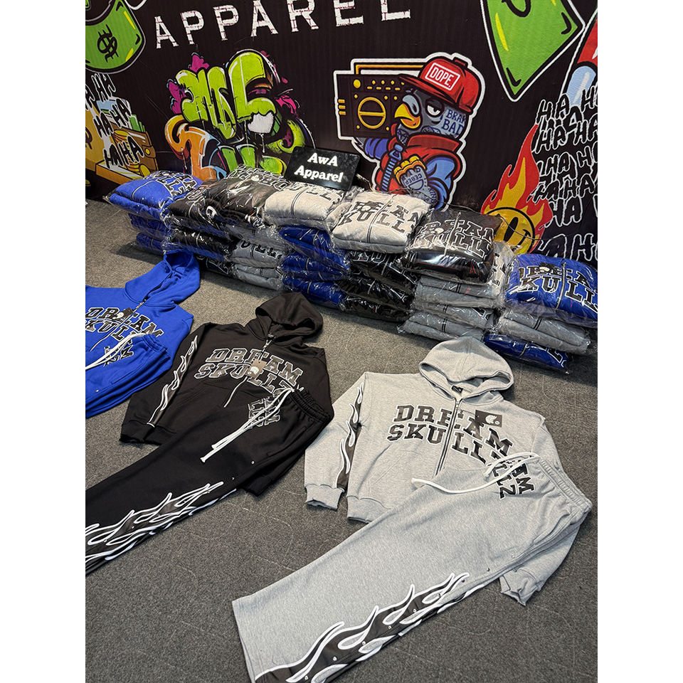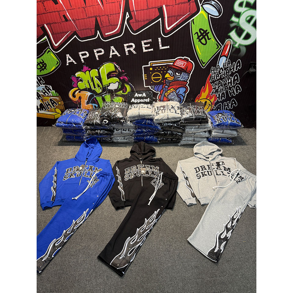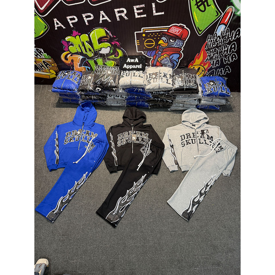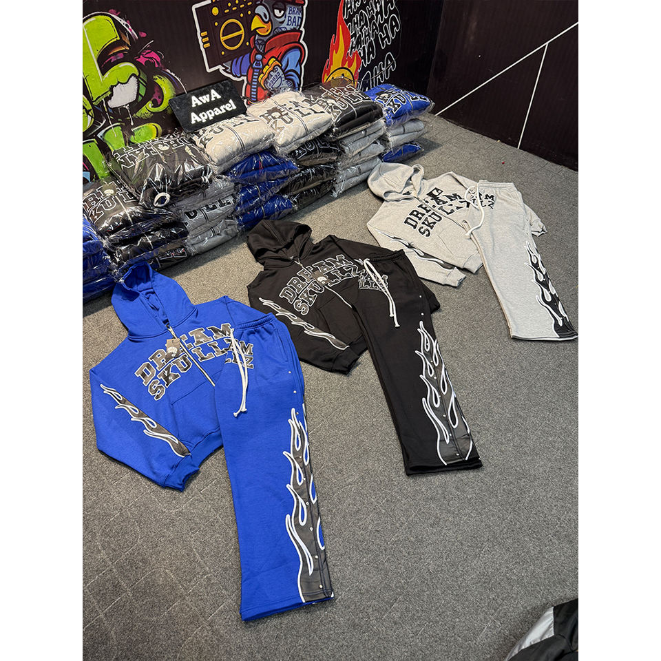 ชุดวอร์มผ้าฝ้ายของผู้ชายผ้าคอตตอนผ้า100% สตรีทแบบเรียงซ้อนกันชุดวอร์มใส่สบายดีไซน์ใหม่2025