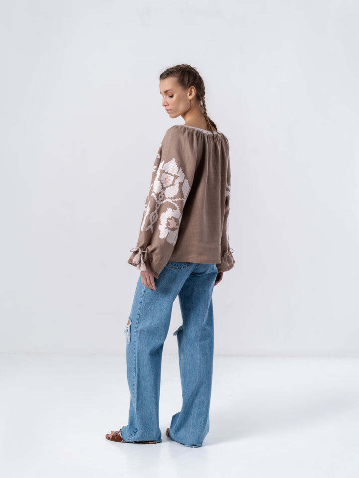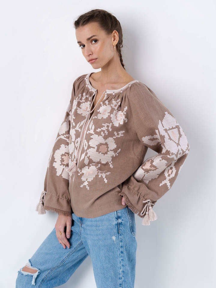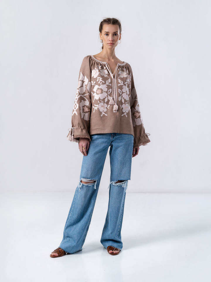 เสื้อเด็กผู้หญิงคอวีแขนยาวปักลายดอกไม้ดีไซน์ใหม่2025