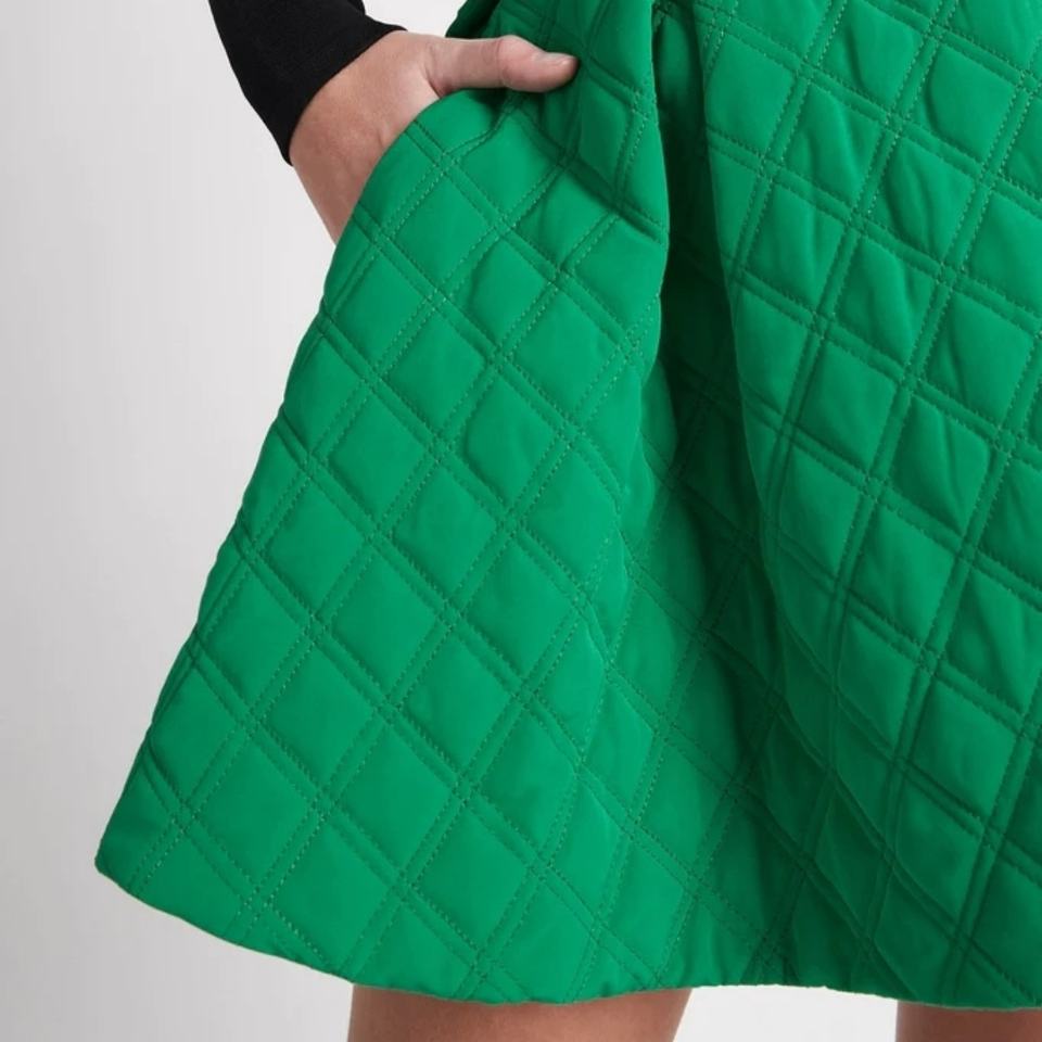 กระโปรงมินิทรงเอ็มไพร์เอวสูงสำหรับผู้หญิง ดีไซน์ใหม่ปี 2025 ระบายอากาศได้ดี แต่งระบายแบบควิลท์จีบลึก มีกระเป๋าข้าง
