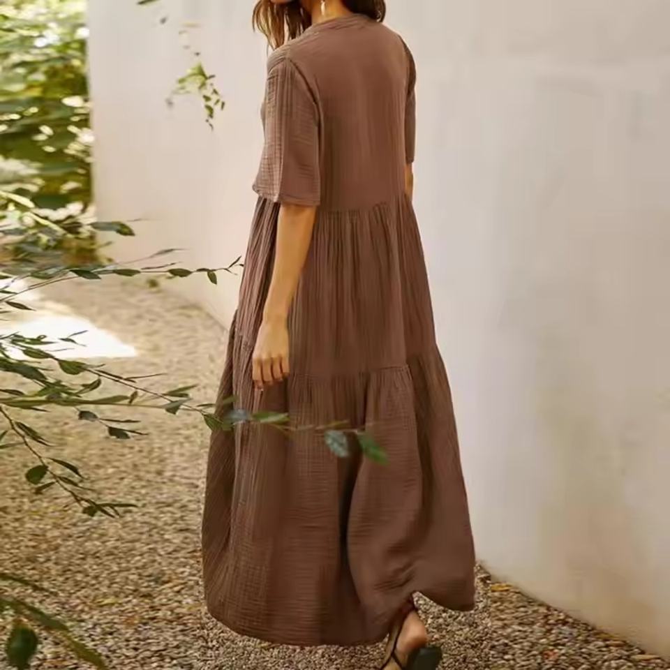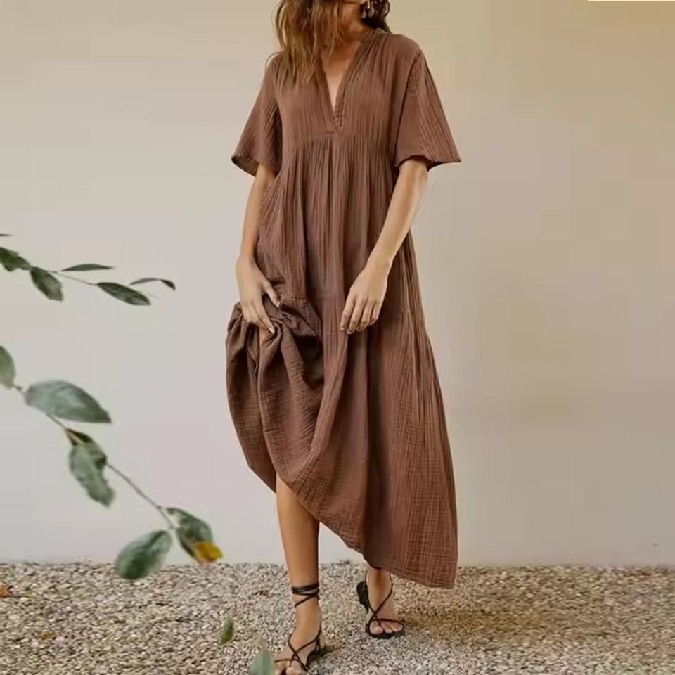 ชุดเดรสลำลองฤดูร้อนปี 2025 ดีไซน์ใหม่ คุณภาพสูง ผ้าฝ้ายแท้ 100% คอทรงกลม แขนกุด ระบายอากาศได้ดี เป็นมิตรกับสิ่งแวดล้อม