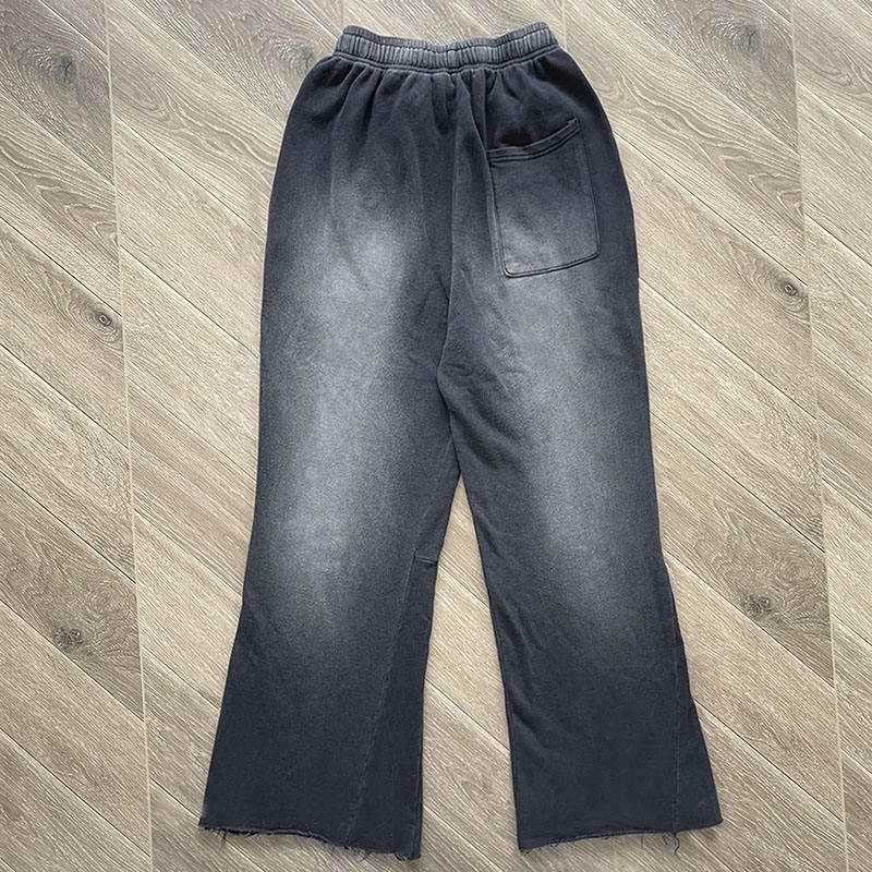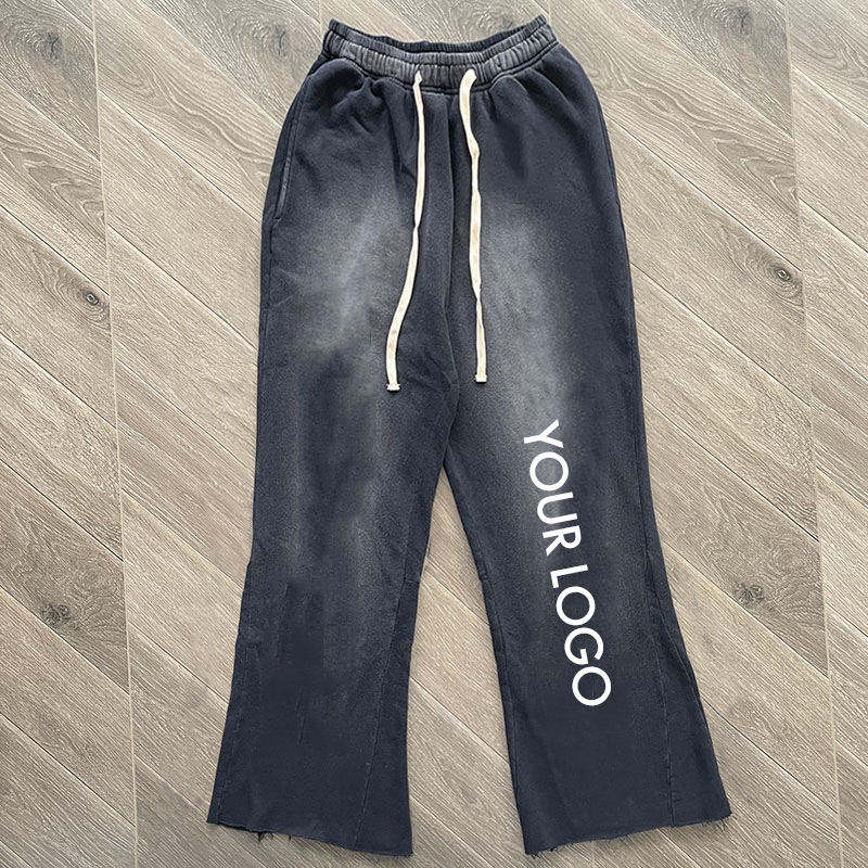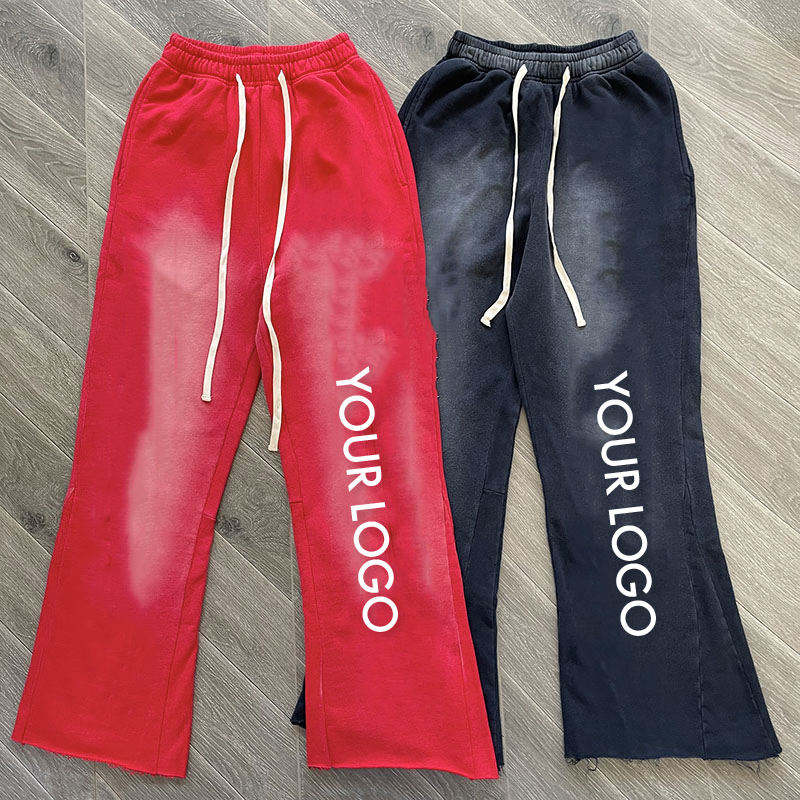 กางเกงขาบานสำหรับผู้ชายกางเกงขาบานแบบลำลองผ้า100% ซีดซีดแสงแดดออกแบบได้เองสำหรับการพิมพ์พัฟขากว้างกางเกงบานดีไซน์ใหม่2025