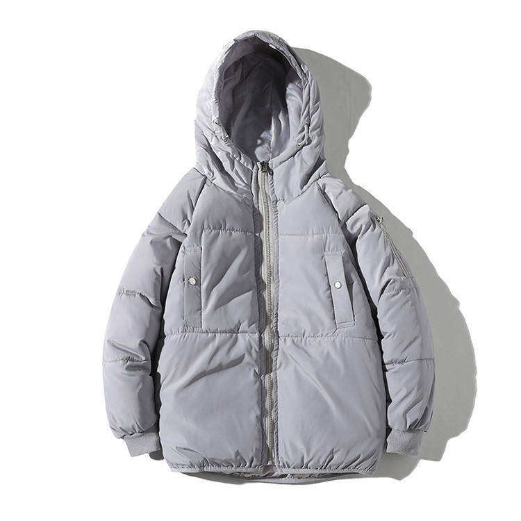 แจ็กเก็ตขนเป็ดผู้ชายคอปกตั้งมีฮู้ดสีทึบมีซิปลายพรางผ้าไนลอนแนวสตรีทสูงสำหรับฤดูหนาวดีไซน์ใหม่2025
