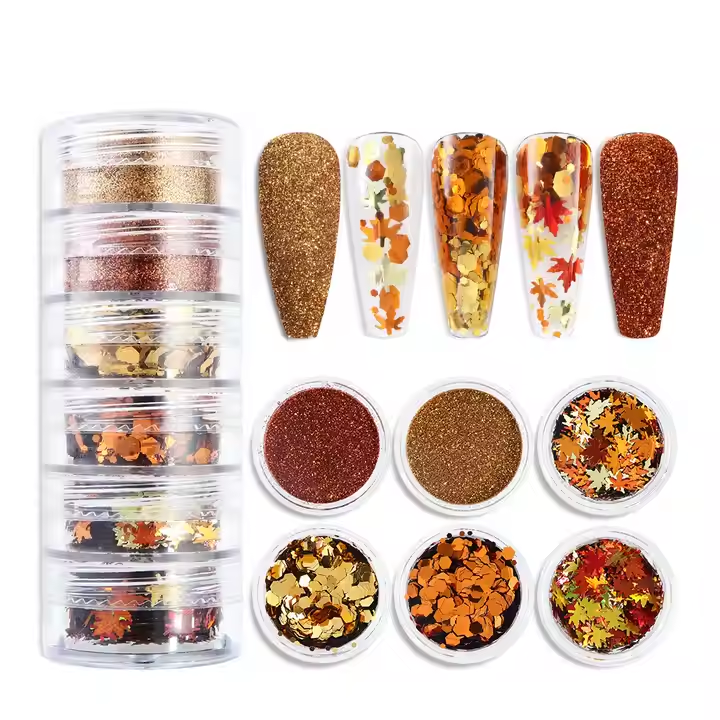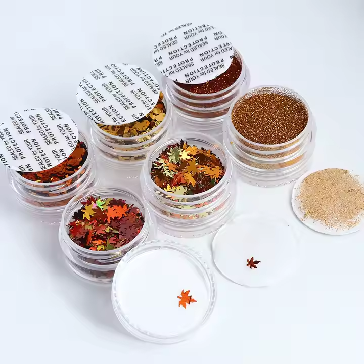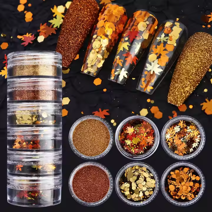 2025เลเซอร์โฮโลแกรมแวววาวสำหรับตกแต่งเล็บ3D ขนาด6มม. ดีไซน์ใหม่สำหรับฤดูใบไม้ร่วง