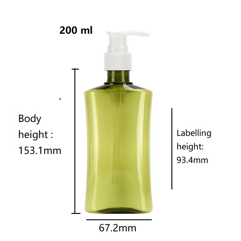 ขวดโลชั่นพลาสติก2025ขนาด200มล. รูปทรงที่กำหนดเองสีเขียวขวดพลาสติก PET