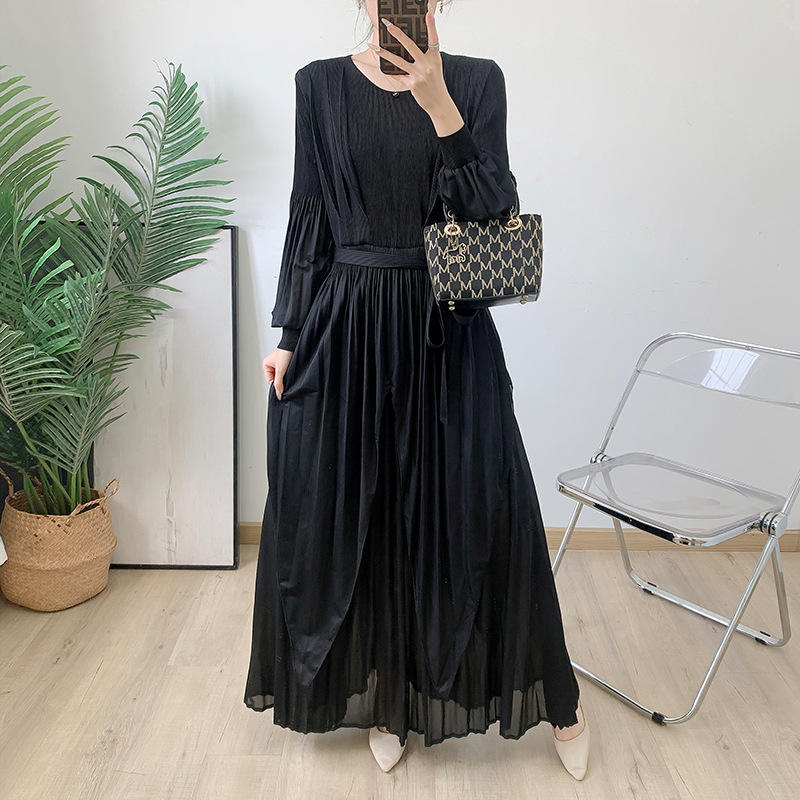 เดรสลำลองมีจีบสำหรับผู้หญิงชุดเดรสแขนยาวมีเข็มขัดดีไซน์ใหม่เสื้อผ้าผู้หญิงไซส์ใหญ่พิเศษส่งไว2025