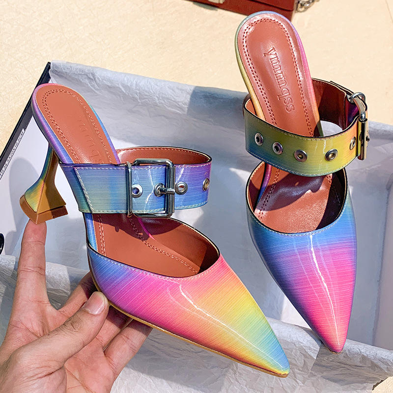 2025 New Designer Summer Slippers Sexy Buckles Slides Sandals Kitten Women Heels