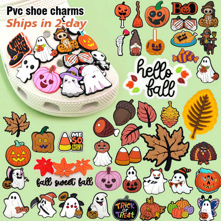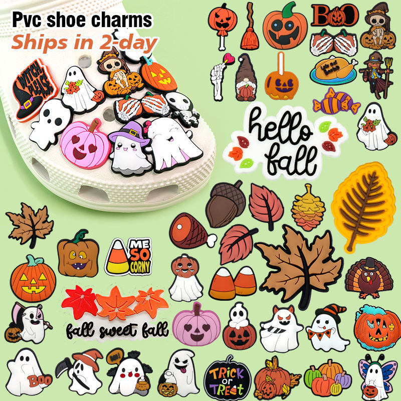 เครื่องประดับรองเท้า2025ใหม่สำหรับฤดูใบไม้ร่วงใบไม้ร่วงฟักทองผีฮาโลวีนตกแต่งด้วยลูกไม้สำหรับฮาโลวีนฤดูใบไม้ร่วงและฤดูใบไม้ร่วง