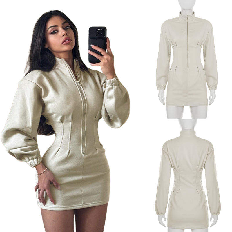 ชุดเดรสทูนิคผู้หญิงคอลเลคชั่นฤดูใบไม้ร่วง-ฤดูหนาวปี 2025 | ชุดเดรสเสื้อฮู้ดมีซิป | ผ้าถักย้อมสีพื้น เอวธรรมชาติ