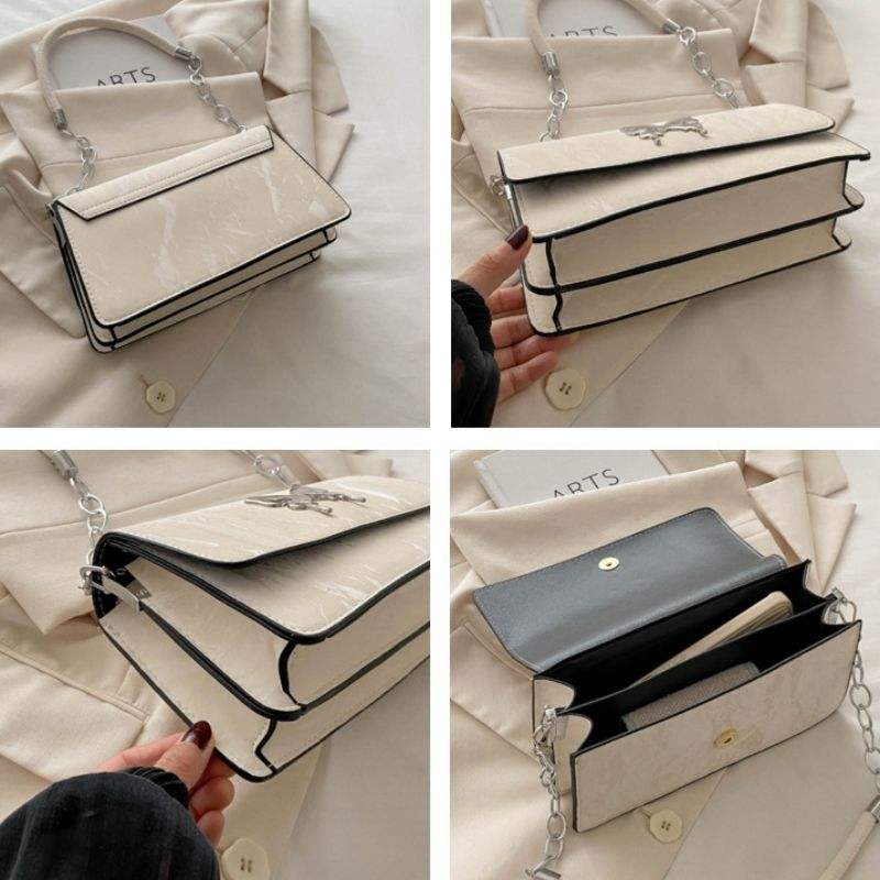กระเป๋าสะพายไหล่ผู้หญิงแบบโซ่เดี่ยวลายผีเสื้อแฟชั่นใหม่ปี 2025 กระเป๋าหนัง PU สะพายใต้วงแขน กระเป๋าถือแฟชั่นผู้หญิง