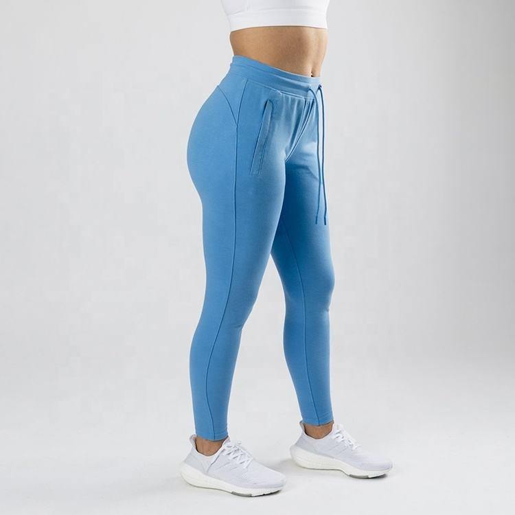 กางเกงวิ่งสำหรับผู้หญิงสีน้ำเงินผ้าคอตตอนผ้า100% เทอร์รี่ผ้าเกล็ดปลาแบบลำลองแฟชั่นใหม่2025