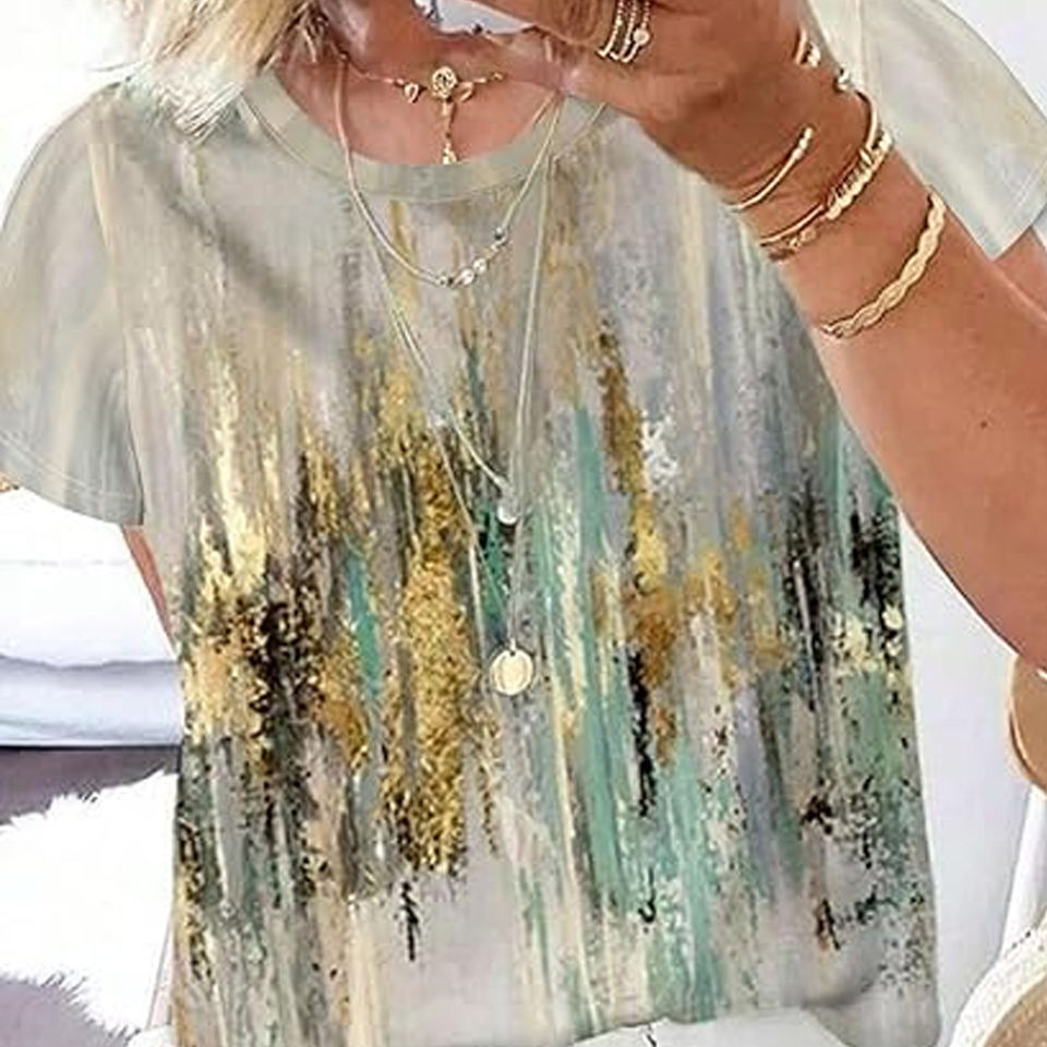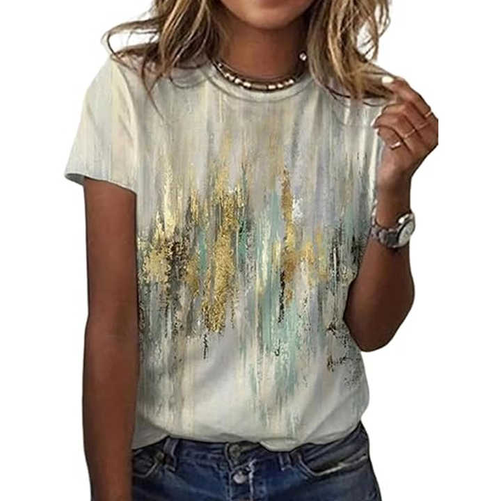 เสื้อยืดแฟชั่นลำลองผู้หญิงฤดูร้อนปี 2025 ขายส่งราคาถูก พิมพ์ลายมัดย้อม สไตล์ทันสมัย ผ้าฝ้าย 100% เป็นมิตรกับสิ่งแวดล้อม