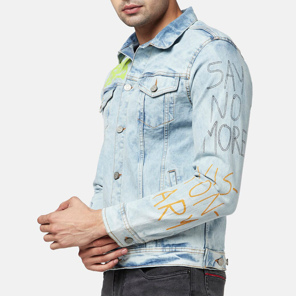 ชื่อผลิตภัณฑ์:แจ็คเก็ตยีนส์พิมพ์ลายสำหรับผู้ชายแบบกำหนดเอง