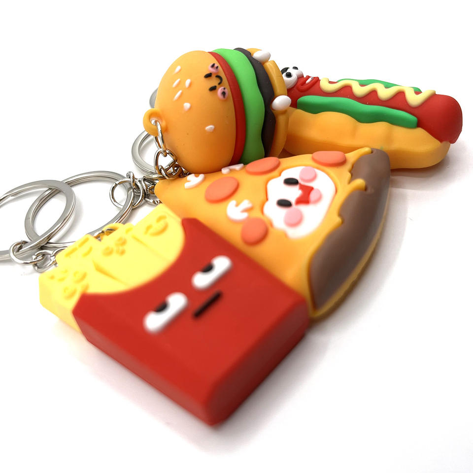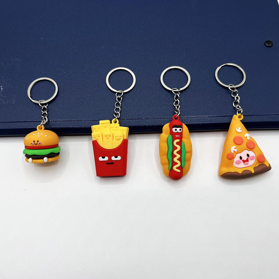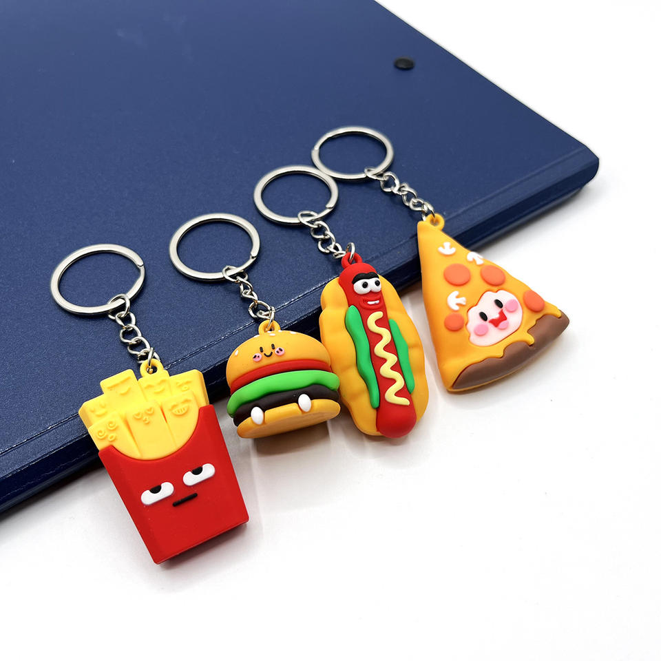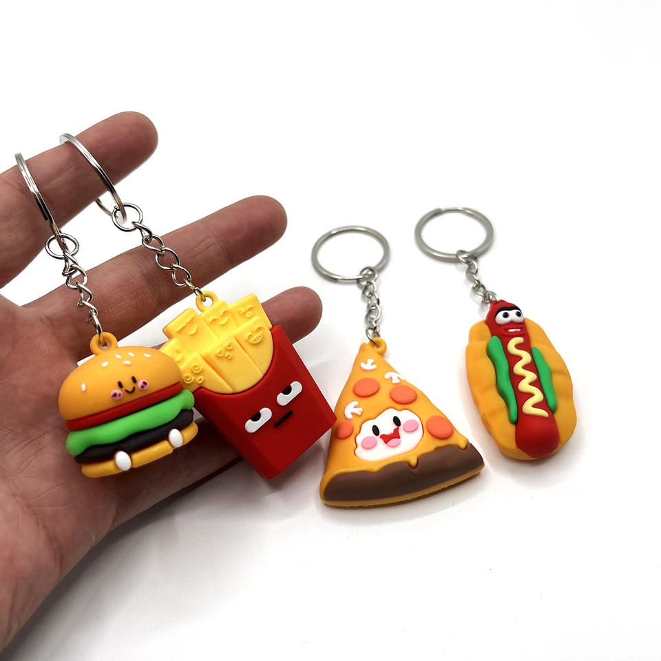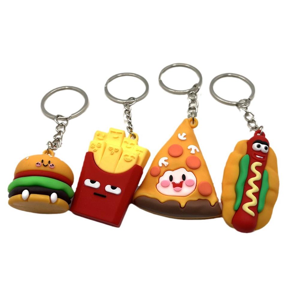 2025ใหม่พวงกุญแจแฟชั่น PVC สุดสร้างสรรค์จำลองเฟรนช์ฟรายส์พิซซ่าฮอทด็อกตกแต่งสำหรับงานอีเวนท์ของขวัญเล็กๆสังกะสีอัลลอย
