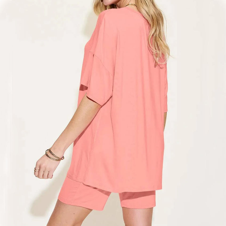 2025 New Fashionable Women's T-shirt Shorts 2-Piece Set-Solid Eco-Friendly Quick Dry Casual Wear Twin Sets Summer