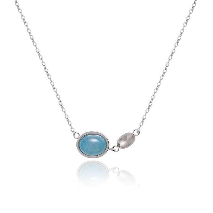 2025 ใหม่ทันสมัยและสง่างามสร้อยคอหินคริสตัลสีฟ้ารูปไข่สแตนเลสของขวัญสำหรับผู้หญิง