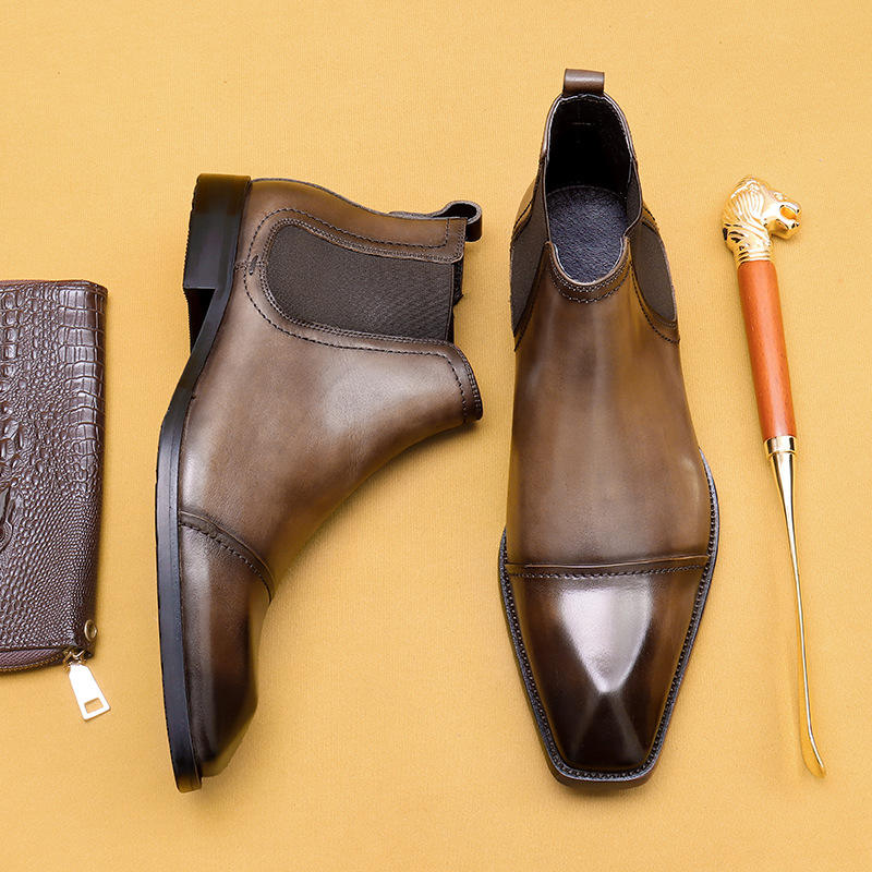 รองเท้าบูทข้อเท้าหนังแท้รุ่นใหม่ปี 2025 สำหรับผู้ชาย แบบผูกเชือก ล้างทำความสะอาดได้ ผลิตด้วยมือแบบ Goodyear สไตล์เรโทร แฟชั่น Amekaki เหมาะสำหรับใส่ทำงาน