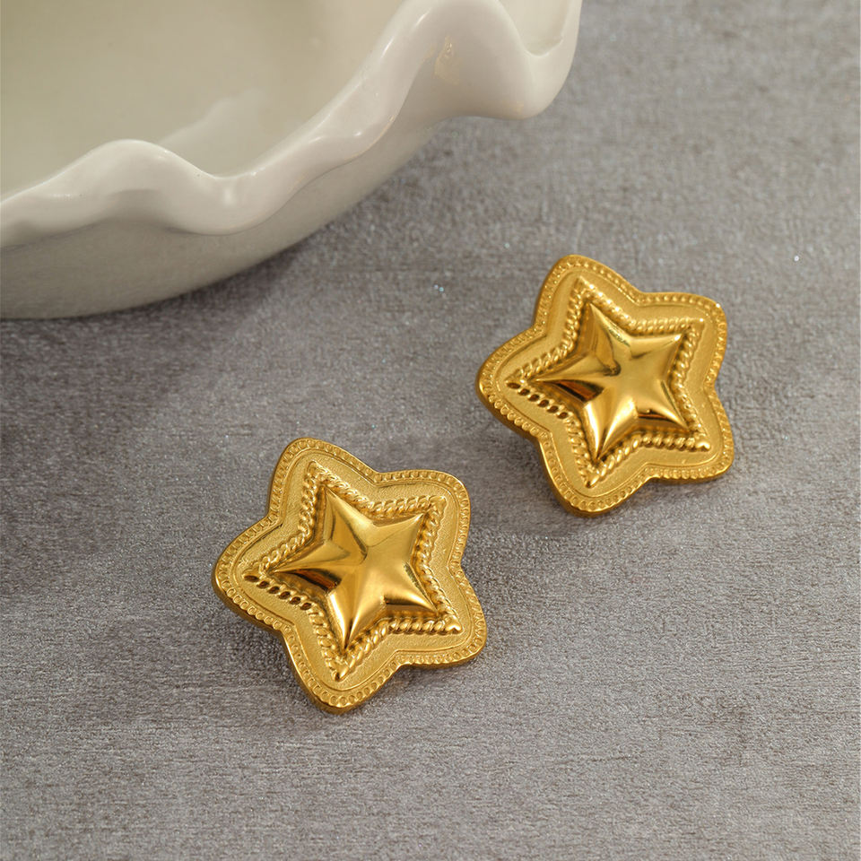 ใหม่2025ต่างหูดาวห้าแฉกชุบทองต่างหูแฟชั่นผู้หญิงต่างหูสแตนเลสแบบมินิมอลสำหรับทุกวัน