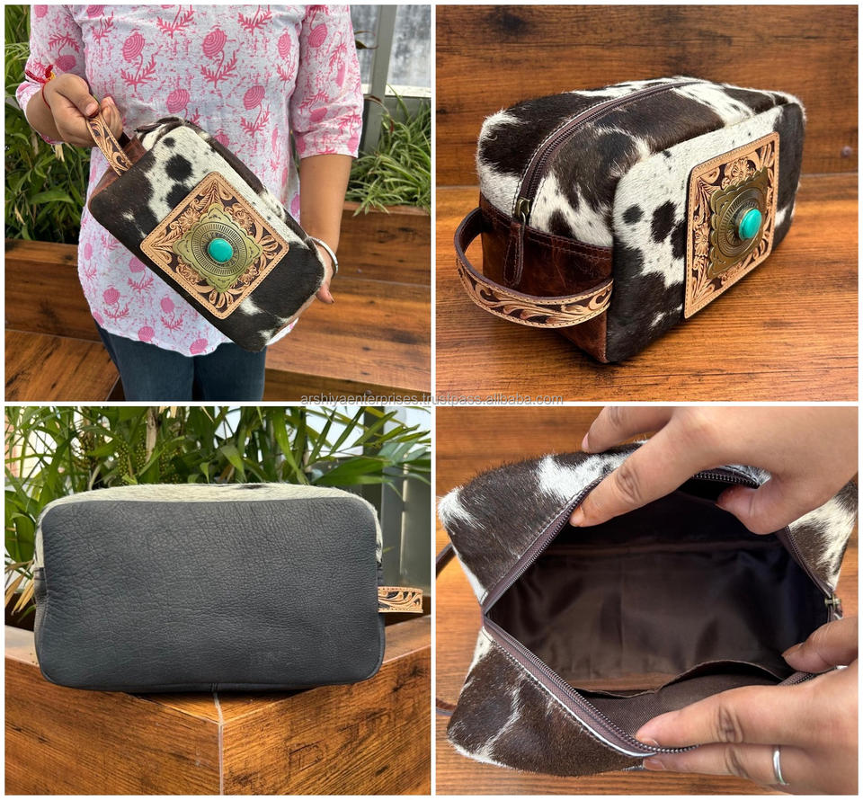 Product Name:Hand-tooled Cowhide Women Makeup Bag