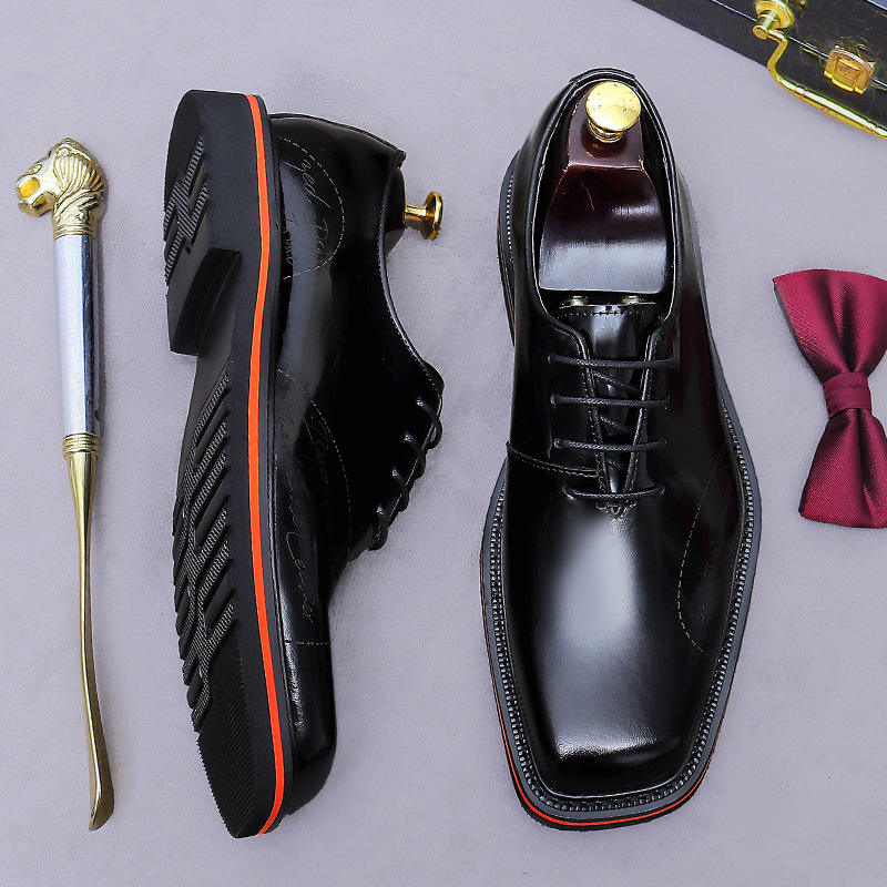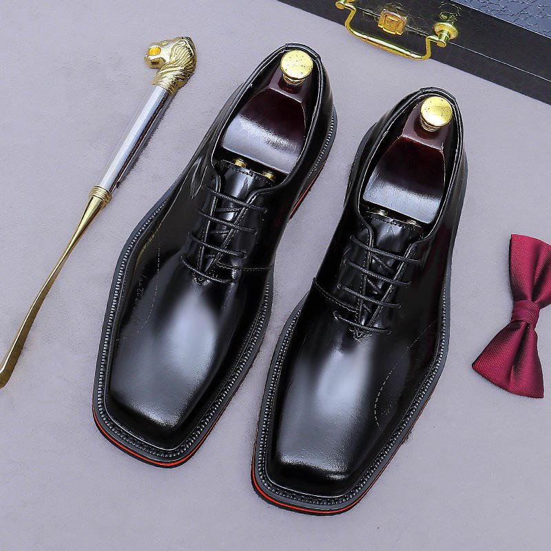 รองเท้าผู้ชายสีน้ำตาลทรงเหลี่ยมหัวตัด รุ่นใหม่ปี 2025 ทำมือ ระบายอากาศได้ดี กันลื่น น้ำหนักเบา แบบผูกเชือก ตกแต่งด้วยผ้าแบบแพทช์เวิร์ค เหมาะสำหรับใส่ทำงาน ธุรกิจ หรือลำลอง